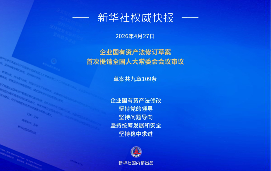 新华社权威快报丨施行近17年的企业国有资产法迎来首次修订